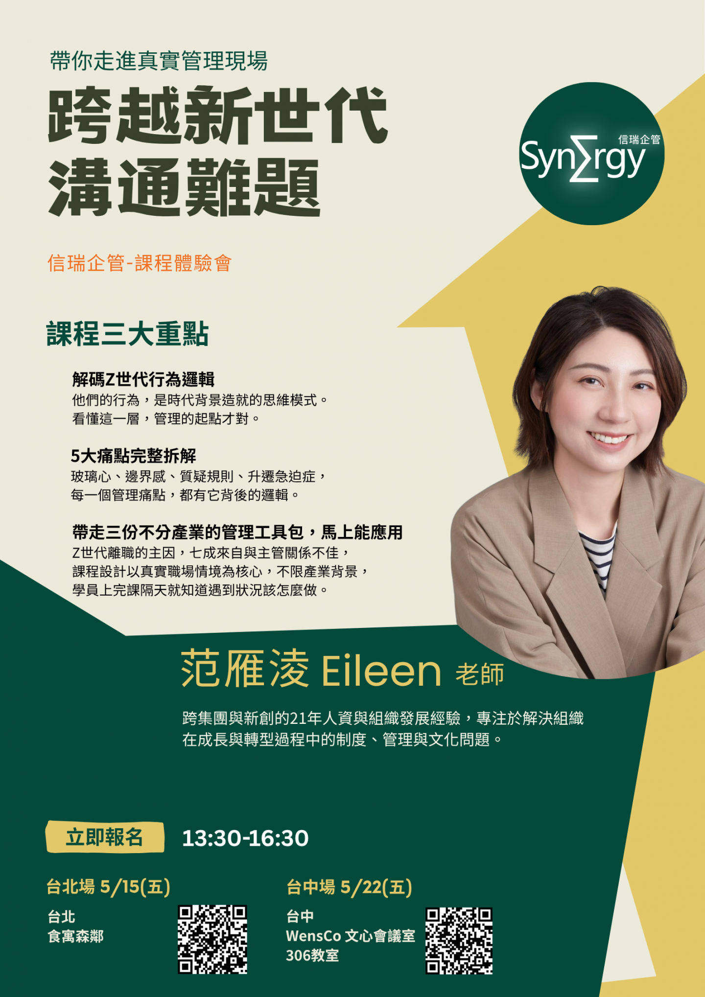 一起從 Eileen 老師的分享,讓跨世代溝通不再是難題!